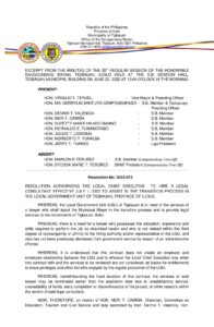 Resolution No. 2022-073 – RESOLUTION AUTHORIZING THE LOCAL CHIEF EXECUTIVE TO HIRE A LEGAL CONSULTANT EFFECTIVE JULY 1, 2022 TO ASSIST IN THE TRANSITION PROCESS IN THE LOCAL GOVERNMENT UNIT OF TIGBAUAN, PROVINCE OF ILOILO.