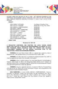 August 17, 2022 jaylord Comment off File Type: pdf File Size: 934 KB Categories: RESOLUTIONS Author: HON. ADRIAN S. CAMPOSAGRADO Share: Resolution No. 2022-104 Resolution No. 2022-110