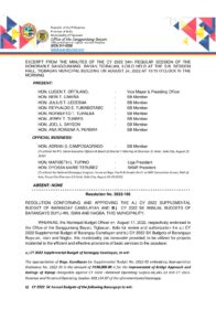 August 24, 2022 jaylord Comment off File Type: pdf File Size: 923 KB Categories: RESOLUTIONS Author: HON. JULIUS T. LEDESMA Share: Resolution No. 2022-110 Resolution No. 2022-107