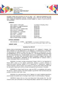 Resolution No. 2022-117 – RESOLUTION AUTHORIZING THE MUNICIPAL MAYOR, ATTY. VIRGILIO T. TERUEL, FOR AND IN BEHALF OF THE MUNICIPALITY OF TIGBAUAN, TO ENTER INTO A CONTRACT TO SELL/DEED OF ABSOLUTE SALE FOR THE PURCHASE OF PORTION OF LOT NO. 9516/ASSESSOR’S LOT NO. 262 WITH AN AREA OF 1,000 SQUARE METERS COVERED BY TAX DECLERATION NO. 40-0020-006750 LOCATED AT BARANGAY BAYUCO, THIS MUNICIPALITY,AS SITE FOR THE SUPER HEALTH CENTER II UNDER THE HEALTH FACILITIES ENHANCEMENT PROGRAM OF THE DEPARTMENT OF HEALTH, WITH A TOTAL PURCHASE PRICE OF P3,300,000.00