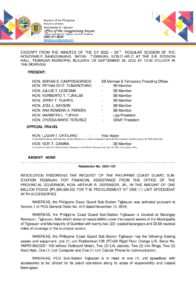000, 000.00) FOR THE PROCUREMENT OF ONE (1) UNIT SPEEDBOAT WITH ACCESSORIES, FINANCIAL ASSISTANCE FROM THE OFFICE OF THE PROVINCIAL GOVERNOR, HON. ARTHUR R. DEFENSOR, HON. JERRY T. TUARES, IN THE AMOUNT OF ONE MILLION PESOS (₱1, JR.