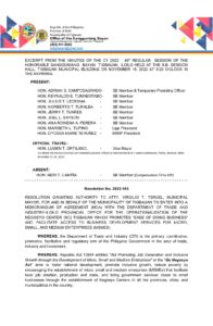 November 16, 2022 admin Comment off File Type: pdf File Size: 314 KB Categories: RESOLUTIONS Tags: “EASE OF DOING BUSINESS”, NEGOSYO CENTER Author: HON. NORBERTO T. TURALBA rs_page_bg_color: Share: Resolution No. 2022-166 Resolution No. 2022-160