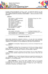 Resolution No. 2023-195 – RESOLUTION REQUESTING SENATOR CYNTHIA A. VILLAR FOR THE RIVERSIDE PROTECTION/ESPLANADE PROJECT ALONG THE SIBALOM RIVER, MUNICIPALITY OF TIGBAUAN, IN THE AMOUNT OF TWO HUNDRED MILLION PESOS (P200,000,000.00)