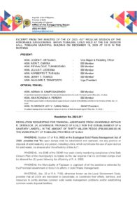 Resolution No. 2023-217 – RESOLUTION REQUESTING FOR FINANCIAL ASSISTANCE FROM HONORABLE ARTHUR R. DEFENSOR, JR, GOVERNOR, PROVINCE OF ILOILO FOR THE ESTABLISHMENT OF A SANITARY LANDFILL IN THE AMOUNT OF THIRTY MILLION PESOS (P30,000,000.00) IN THE MUNICIPALITY OF TIGBAUAN, PROVINCE OF ILOILO