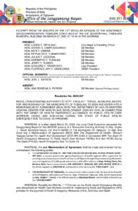 Resolution No. 2024-037 – FRESOLUTION GRANTING AUTHORITY TO ATTY. VIRGILIO T. TERUEL, MUNICIPAL MAYOR, FOR AND IN BEHALF OF THE MUNICIPALITY OF TIGBAUAN, TO SIGN AND ENETR INTO A MEMORANDUM OF AGRREMENT (MOA) WITH THE DEPARTMENT OF HEALTH WESTERN VISAYAS-CENTER FOR HEALTH AND DEVELOPMENT (DOH-WV CHD) IN CONNECTION WITH THE GRANT OF HEALTH EMERGENCY ALLOWANCE TO PUBLIC HEALTH CARE WORKERS (HCWS) AND NON-HCWS DURING STATE OF PUBLIC HEALTH EMERGENCY DUE TO COVID-19 PANDEMIC