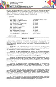 Resolution No. 2024-141 – A RESOLUTION EXPRESSING GRATITUDE TO BARANGAY BAGUMBAYAN FOR ACTIVELY PARTICIPATING AND COOPERATING DURING THE CONDUCT OF THE 2ND OUT-TO-THE BARANGAY SESSION FOR THE YEAR 2024 OF THE SANGGUNIANG BAYAN OF TIGBAUAN