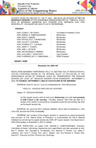 Resolution No. 2024-145 – RESOLUTION AMENDING TEMPORARILY RULE VII, SECTION 14(b) OF RESOLUTION NO. 2022-083 OTHERWISE KNOWN AS THE INTERNAL RULES OF PROCEDURE OF THE SANGGUNIANG BAYAN OF TIGBAUAN, ILOILO BY TRANSFERRING THE REGULAR SESSION DAY (S.B’S 36TH REGULAR SESSION) FROM WEDNESDAY, SEPTEMBER 4, 2024, TO TUESDAY, SEPTEMBER 3, 2024 AT 9:00 O’CLOCK IN THE MORNING.”