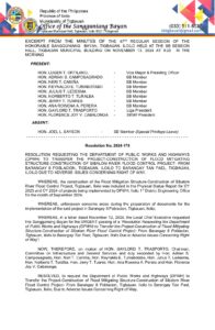 November 13, 2024 admin Comment off File Type: pdf File Size: 275 KB Categories: RESOLUTIONS Tags: DPWH, PROJECT-CONSTRUCTION, SIBALOM RIVER Author: HON. GAYLORD T. TRASPORTO rs_page_bg_color: Share: Resolution No. 2024-177 Resolution No. 2024-182