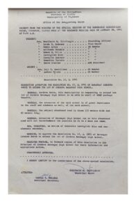 January 28, 1991 admin Comment off File Type: pdf File Size: 716 KB Categories: RESOLUTIONS Author: Hon. Leovigildo Diaz Share: Resolution No. 91-015 Resolution No. 91-013