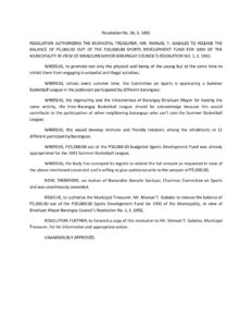 October 26, 1992 admin Comment off File Type: pdf File Size: 37 KB Categories: RESOLUTIONS Author: Hon. Gerrylin Santuyo Share: Resolution No. 92-052 Resolution No. 92-125