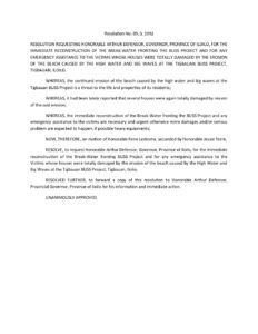 October 26, 1992 admin Comment off File Type: pdf File Size: 27 KB Categories: RESOLUTIONS Author: Hon. Rene T. Ledesma Share: Resolution No. 92-032 Resolution No. 92-061