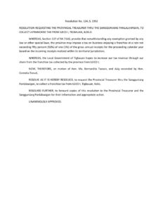 October 1, 1992 admin Comment off File Type: pdf File Size: 28 KB Categories: RESOLUTIONS Author: Hon. Ma. Bernadita T. Taasan Share: Resolution No. 92-141 Resolution No. 92-142