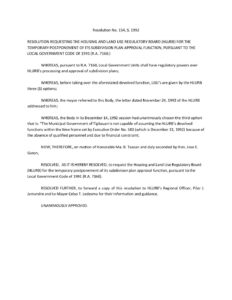 October 1, 1992 admin Comment off File Type: pdf File Size: 28 KB Categories: RESOLUTIONS Author: Hon. Ma. Bernadita T. Taasan Share: Resolution No. 92-156 Resolution No. 92-135