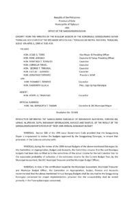 April 6, 1999 admin Comment off File Type: pdf File Size: 32 KB Categories: RESOLUTIONS Tags: 1999 ANNUAL BARANGAY BUDGET Author: HON. GEORGE TRIBUNAL Share: Resolution No. 99-039 Resolution No. 99-041