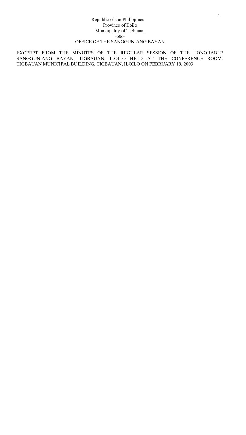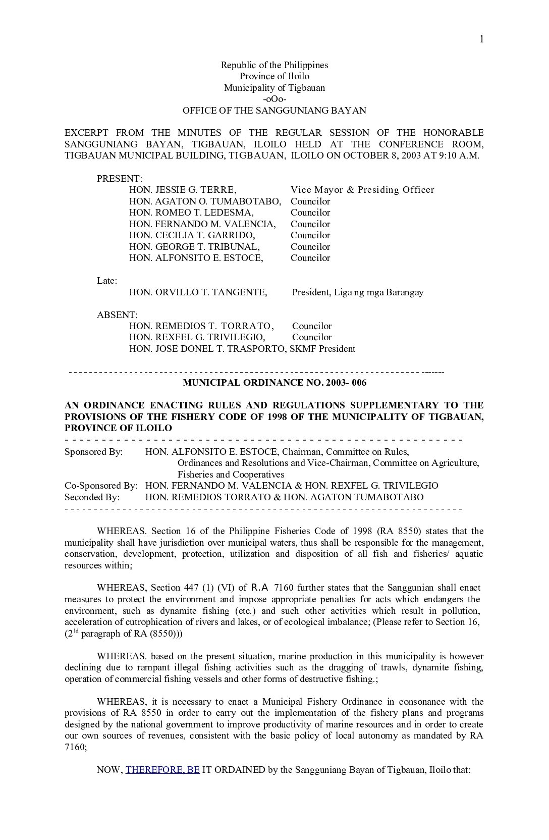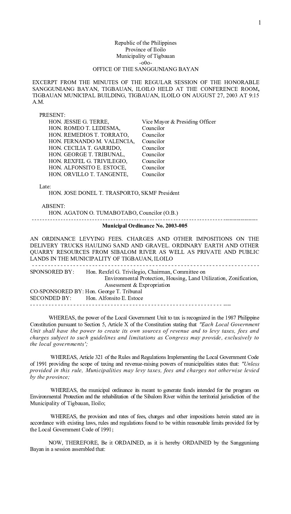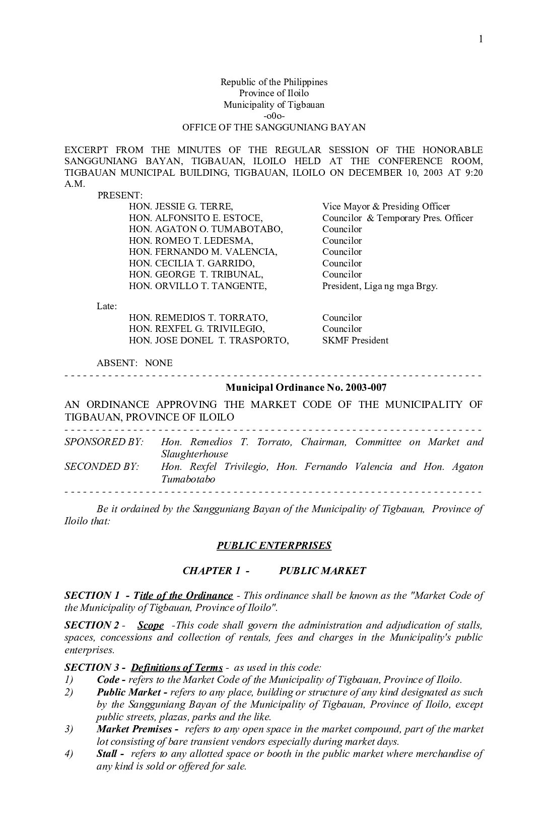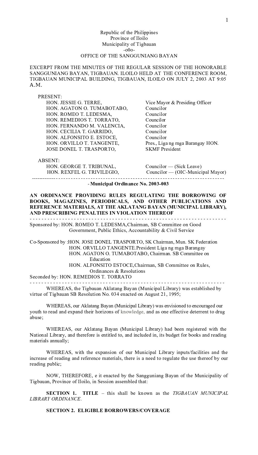 Municipal Ordinance No. 2003-001