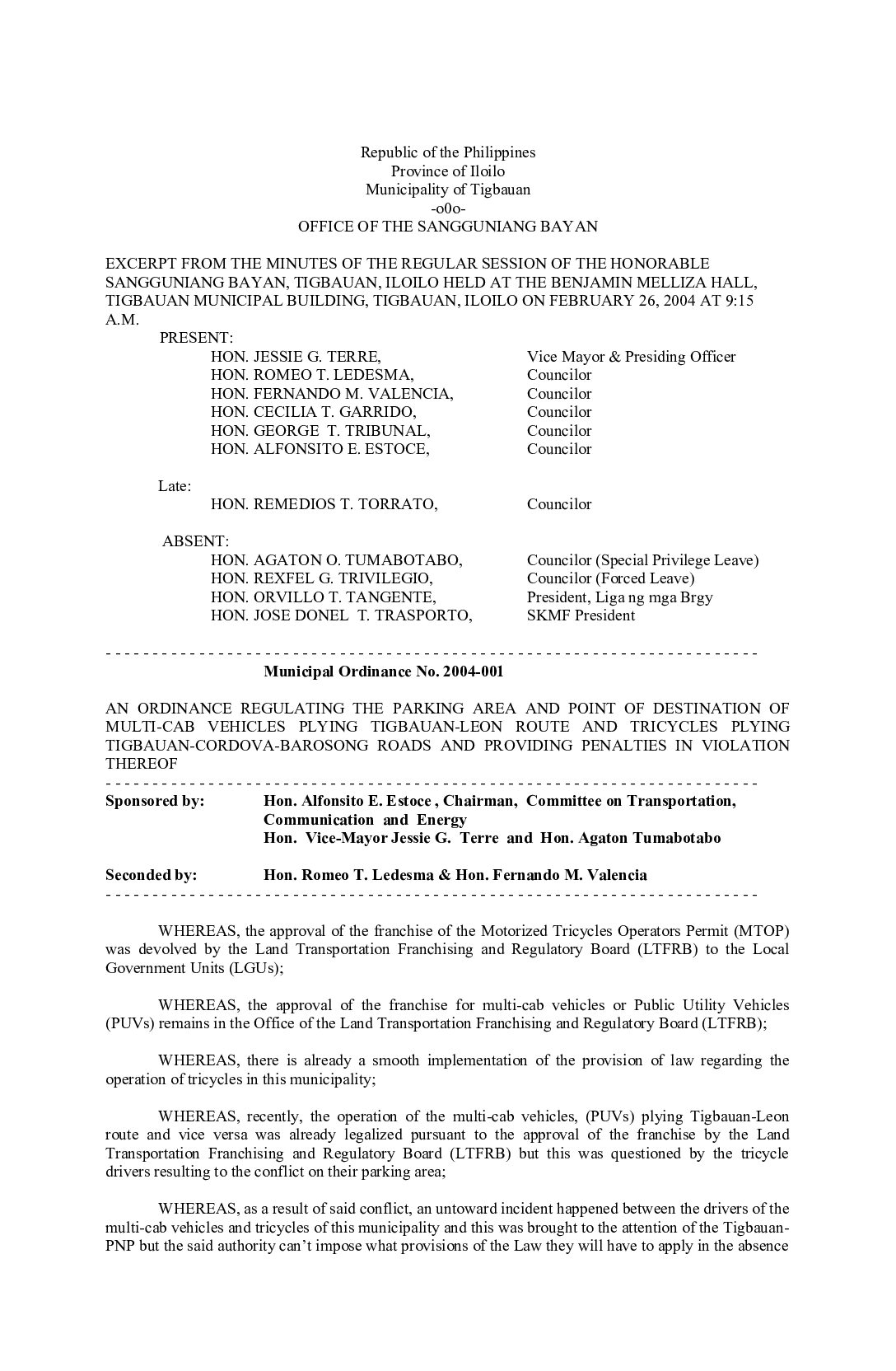 Municipal Ordinance No. 2003-004