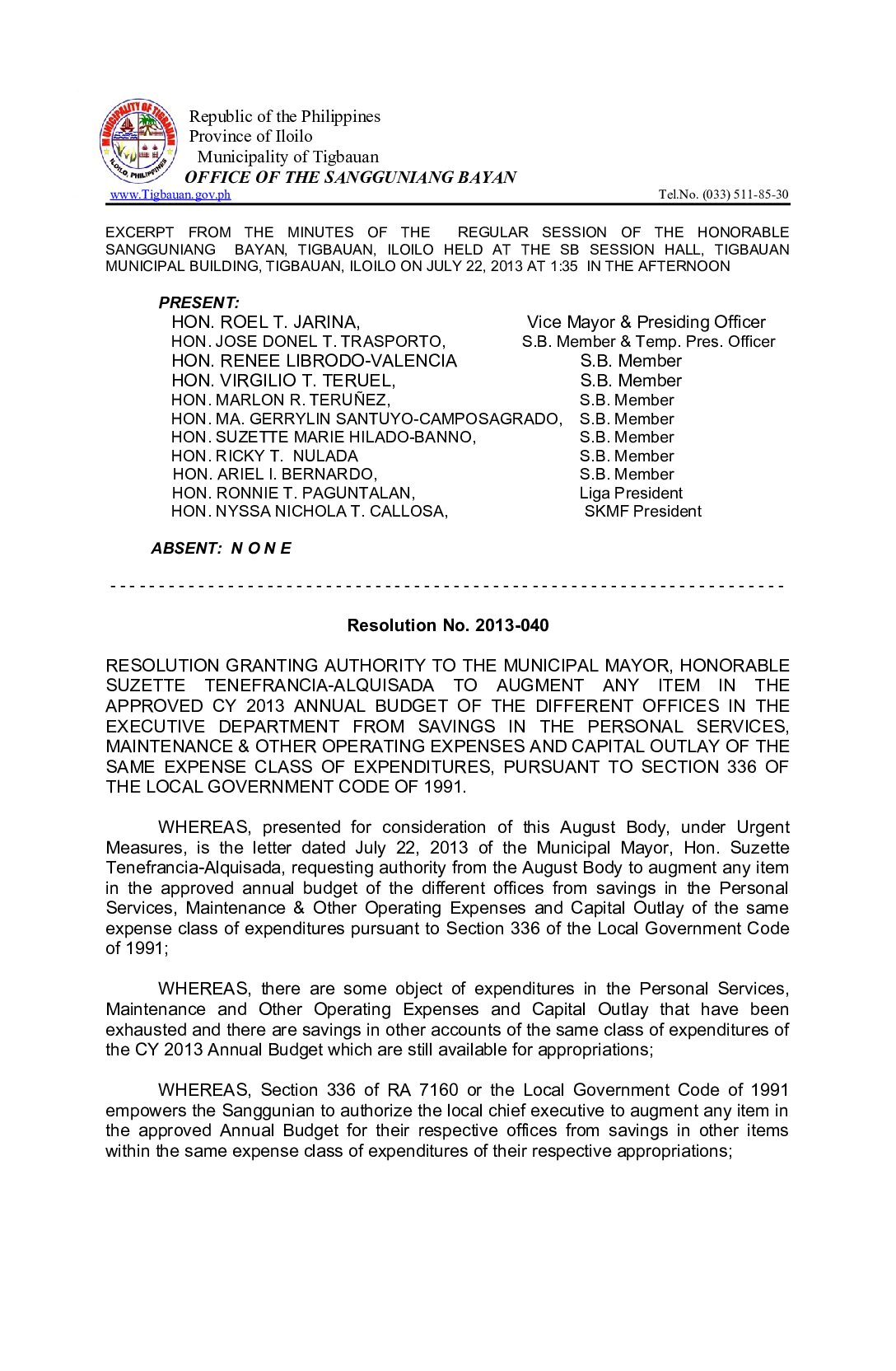 Resolution No. 2013-079