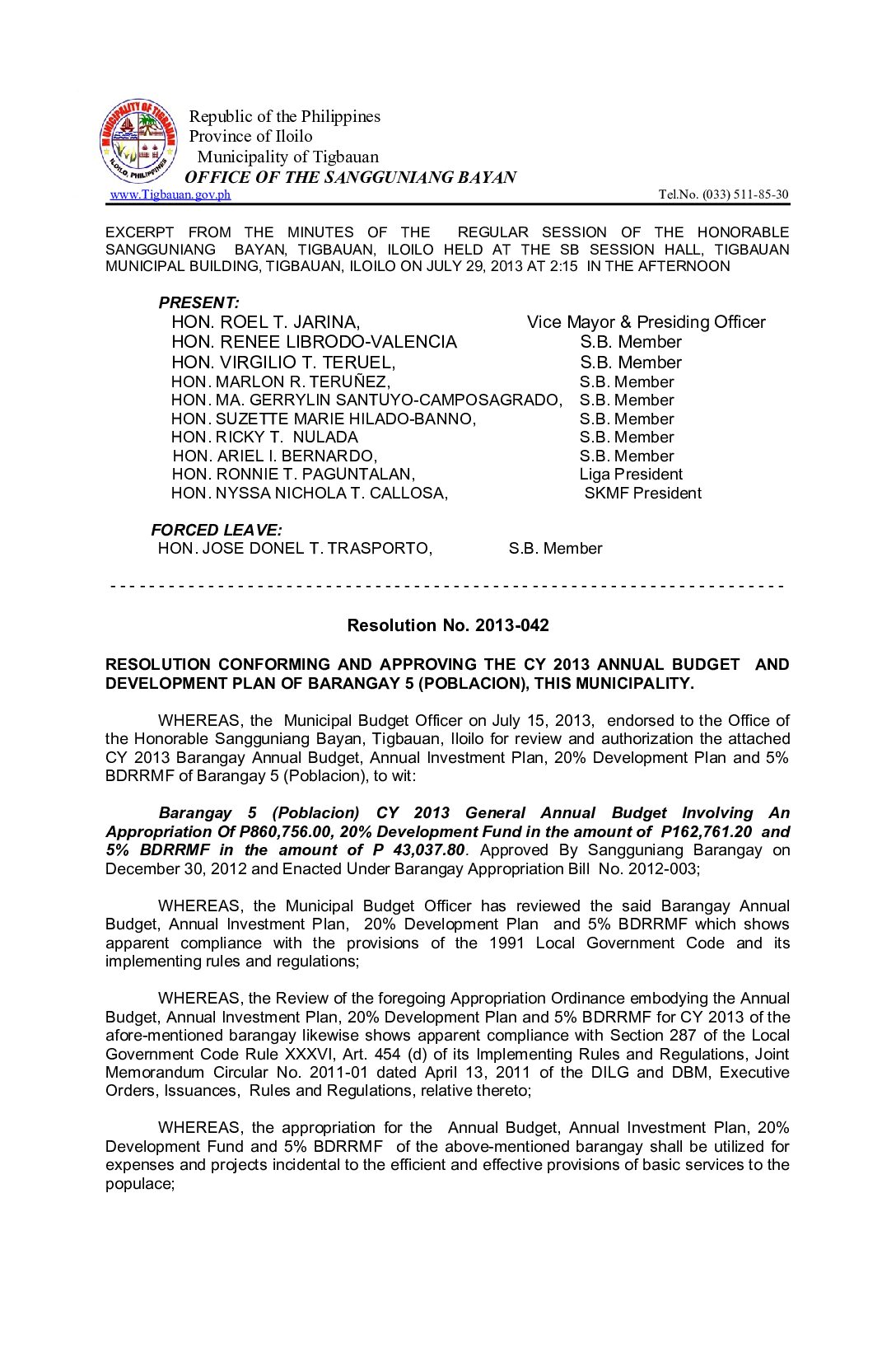 Resolution No. 2013-042