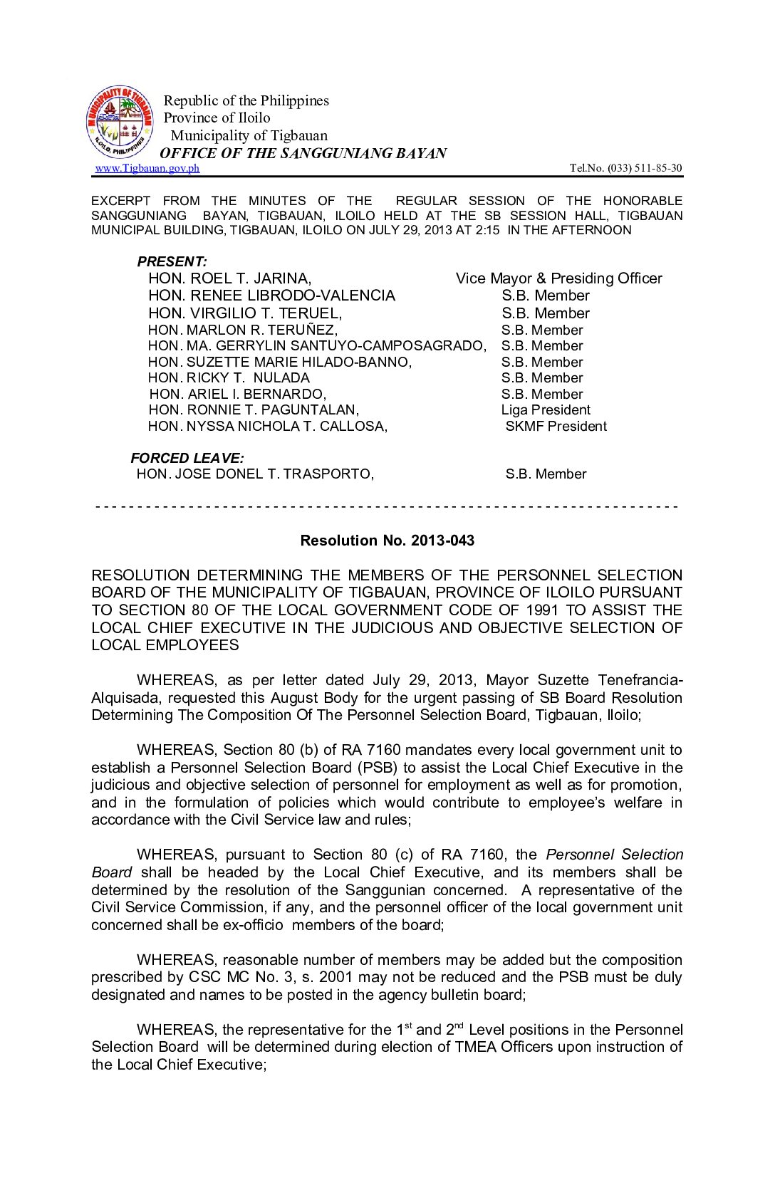 Resolution No. 2013-043