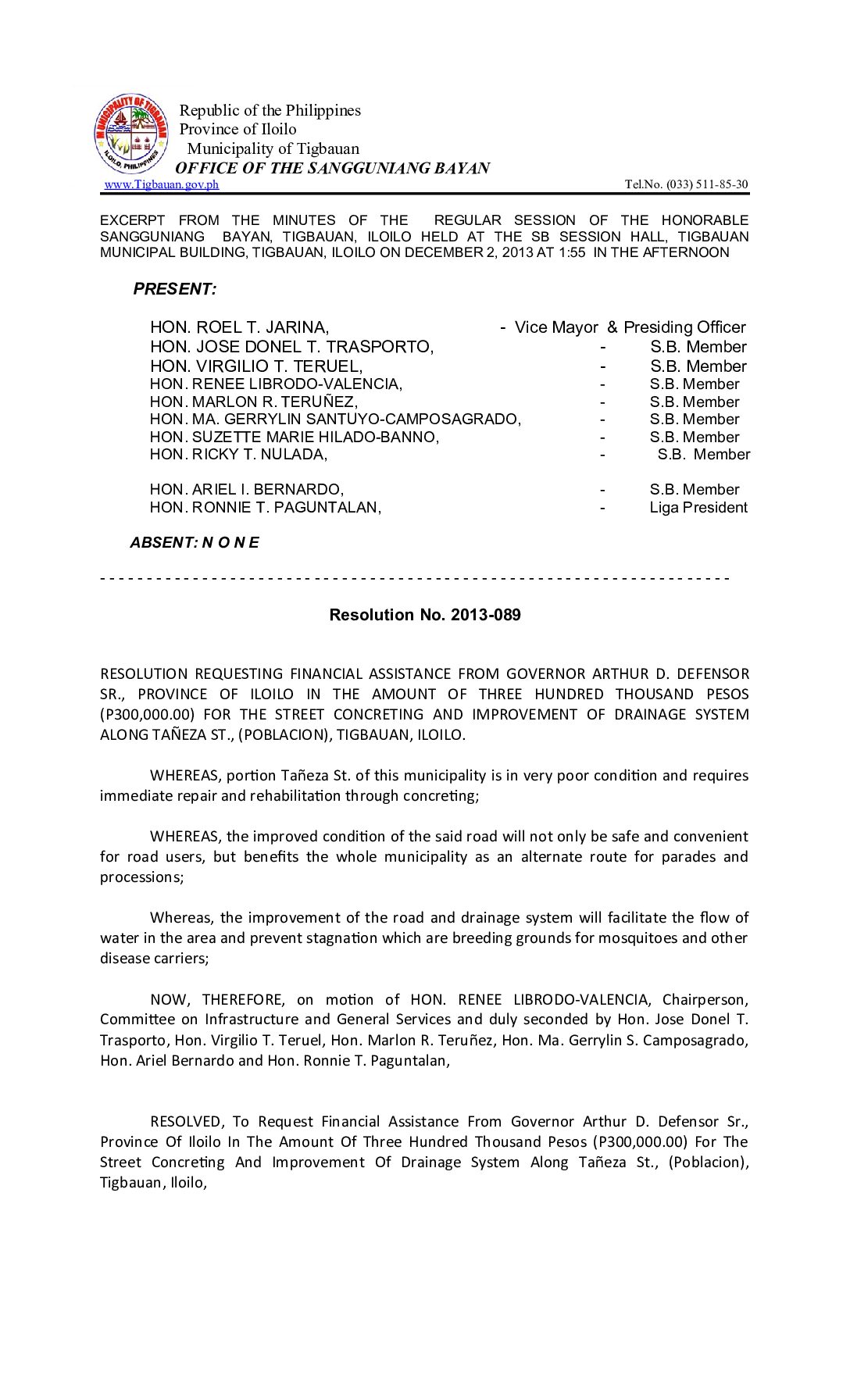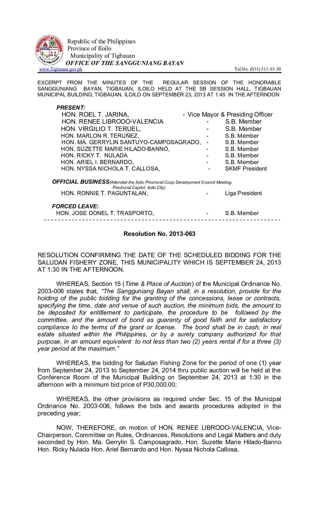 Resolution No. 2013-063