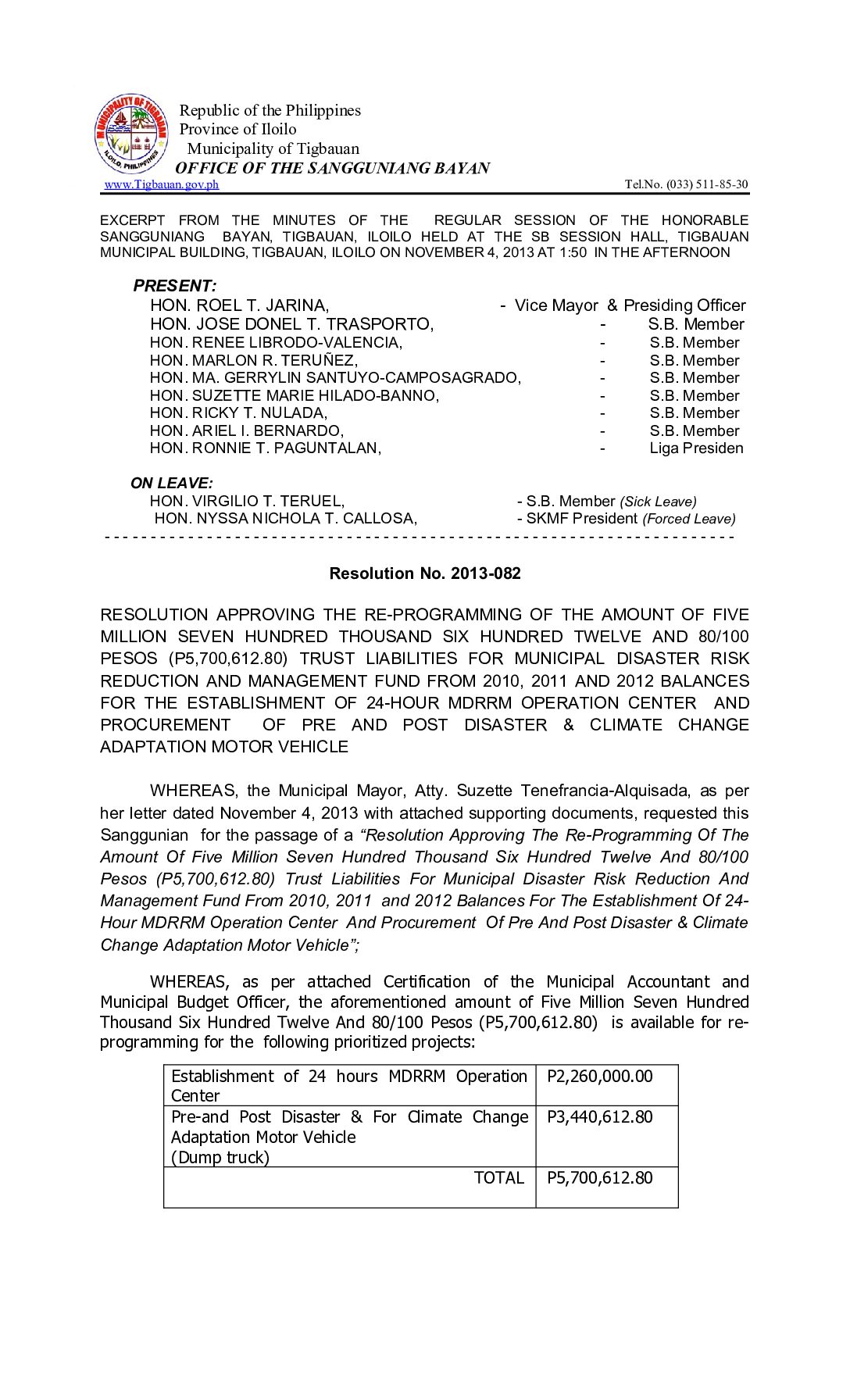 Resolution No. 2013-082