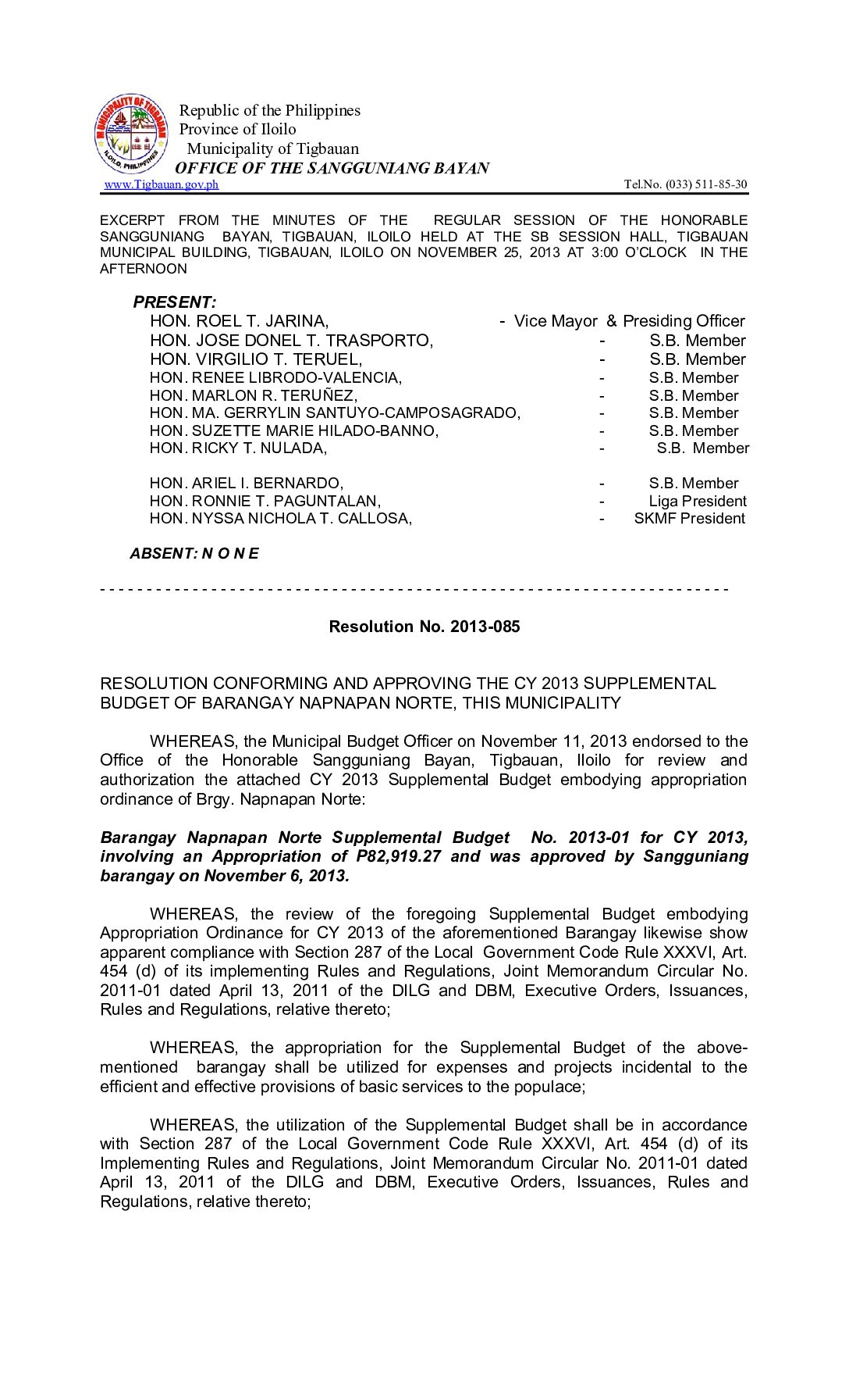 Resolution No. 2013-085