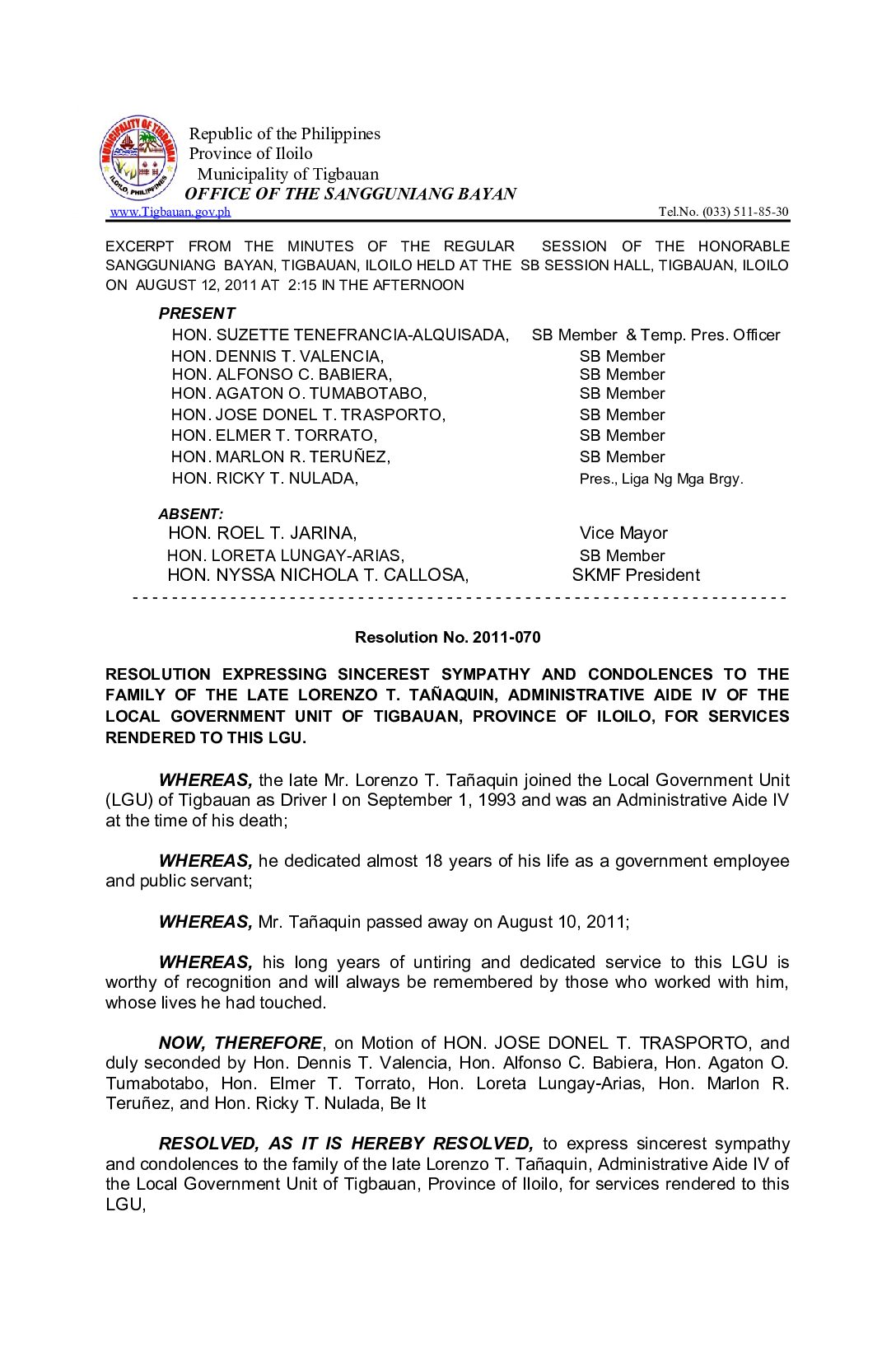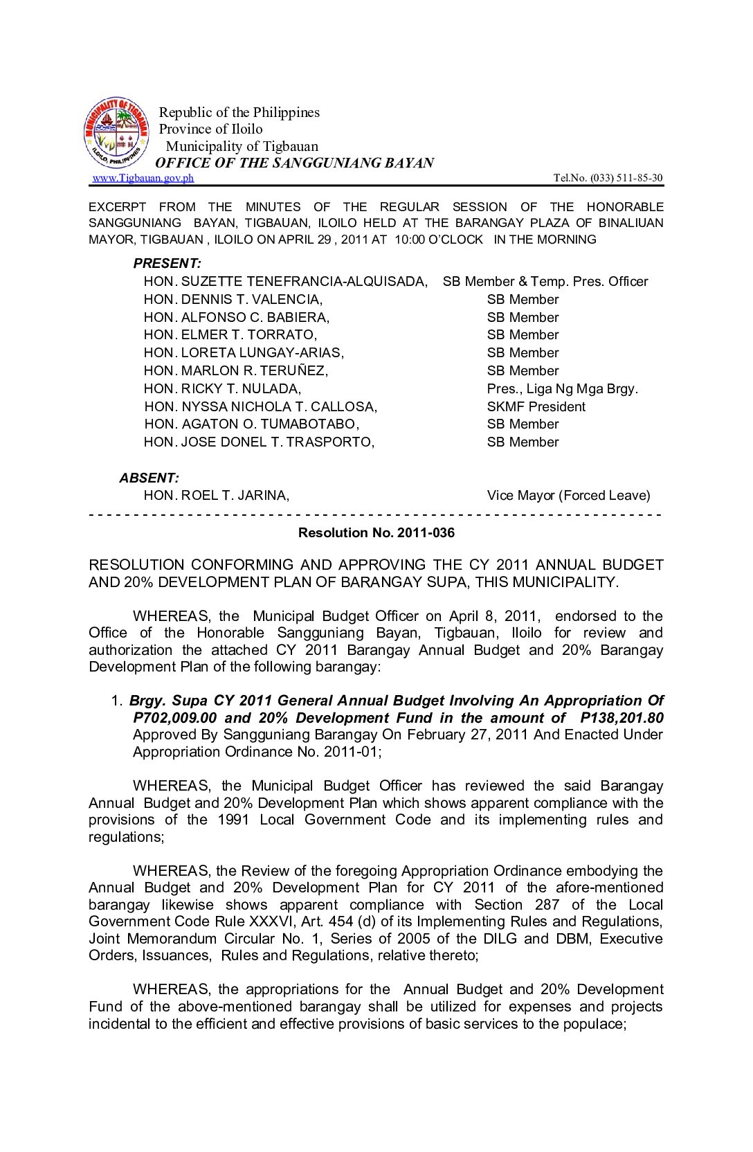 Resolution No. 2011-036