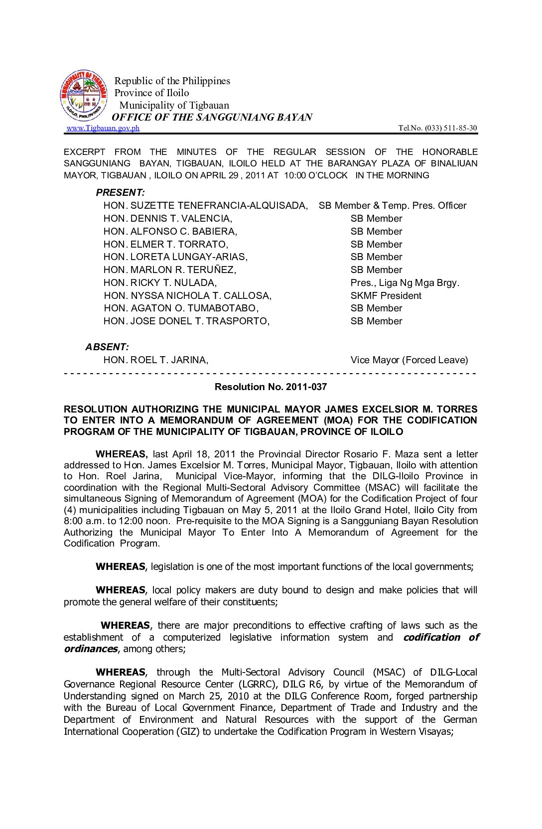 Resolution No. 2011-037