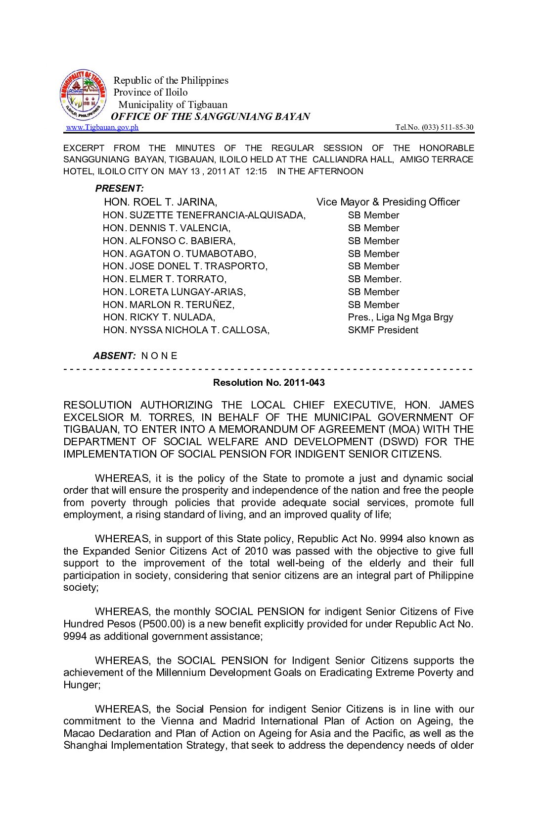 Resolution No. 2011-043