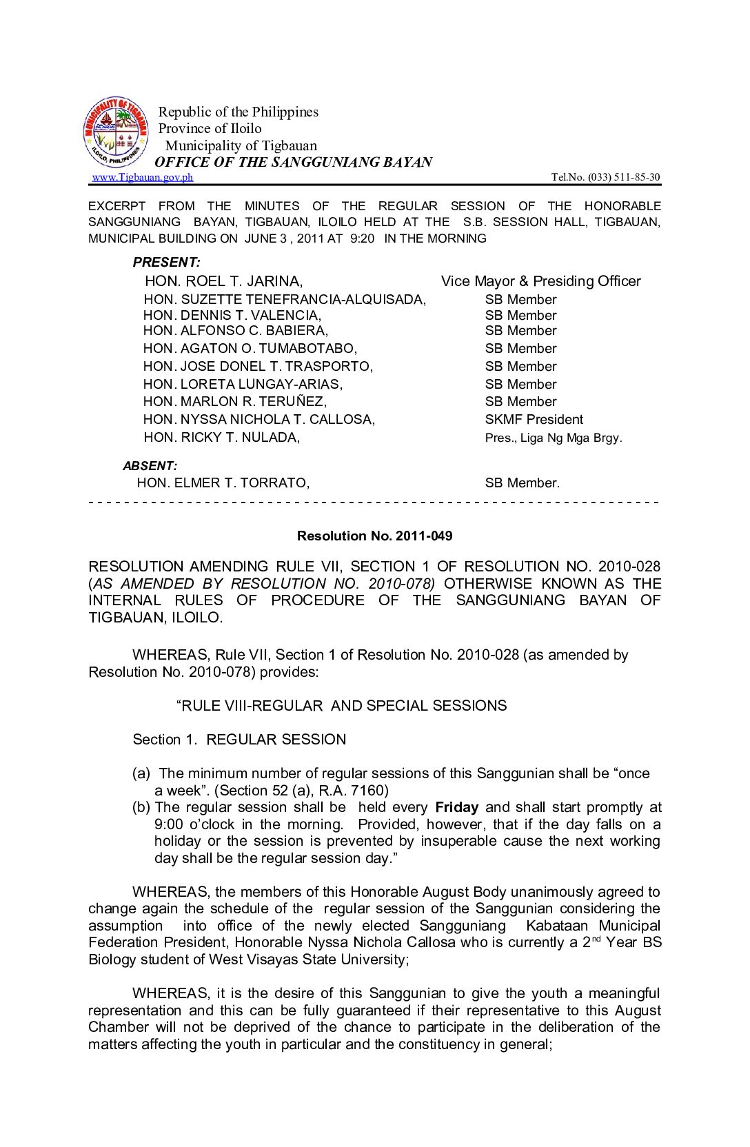 Resolution No. 2011-049
