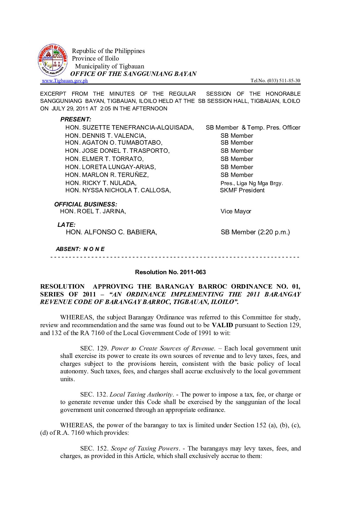 Resolution No. 2011-063