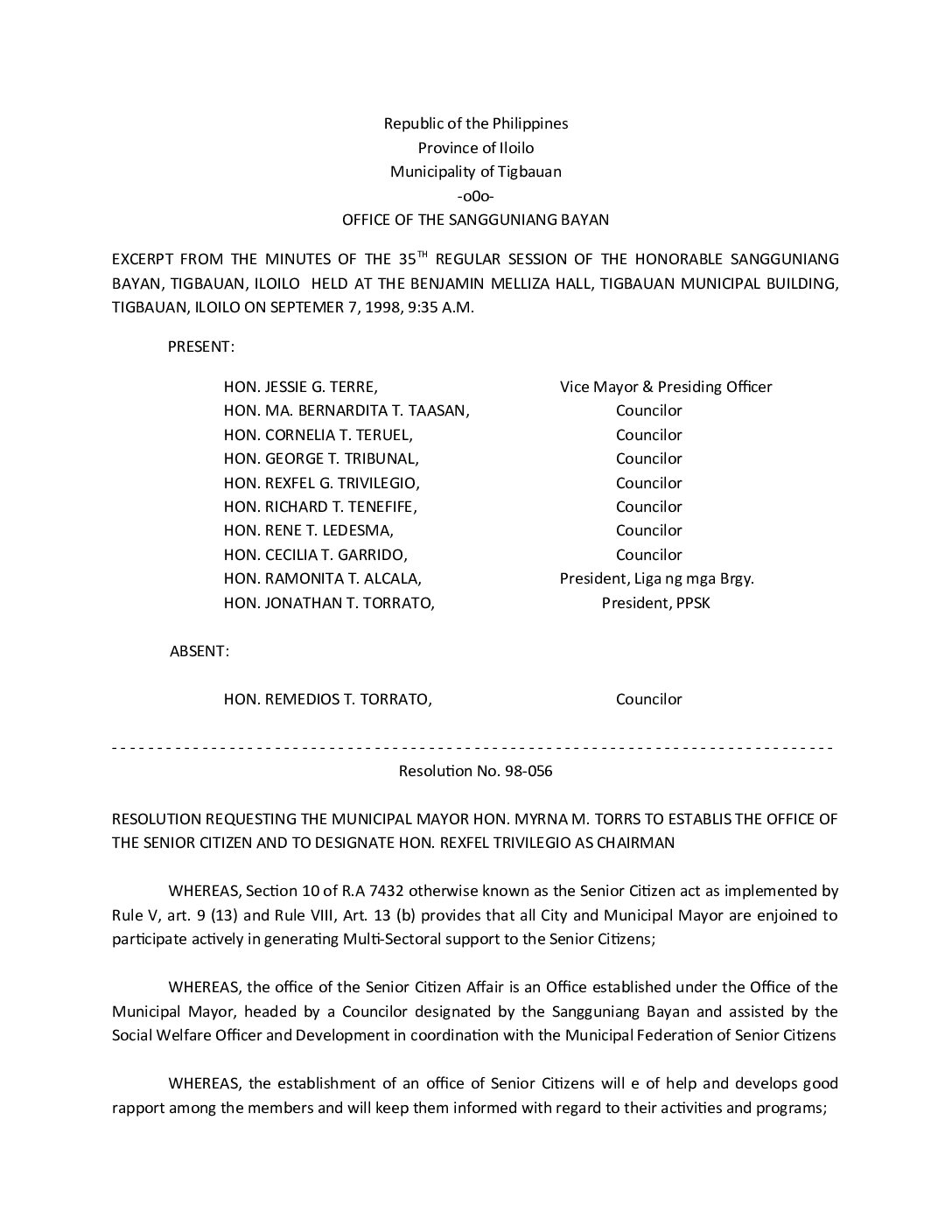 Resolution No. 98-056