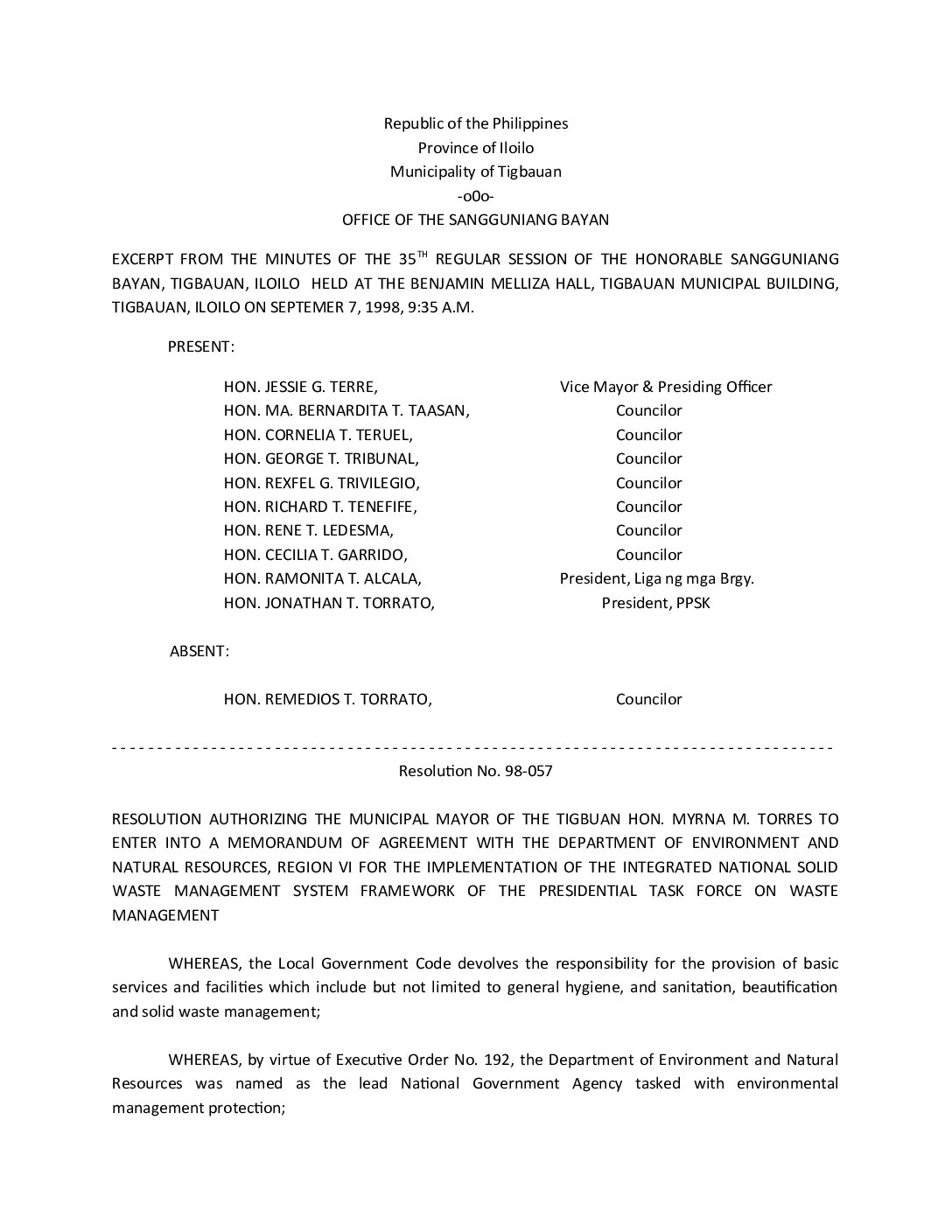 Resolution No. 98-057