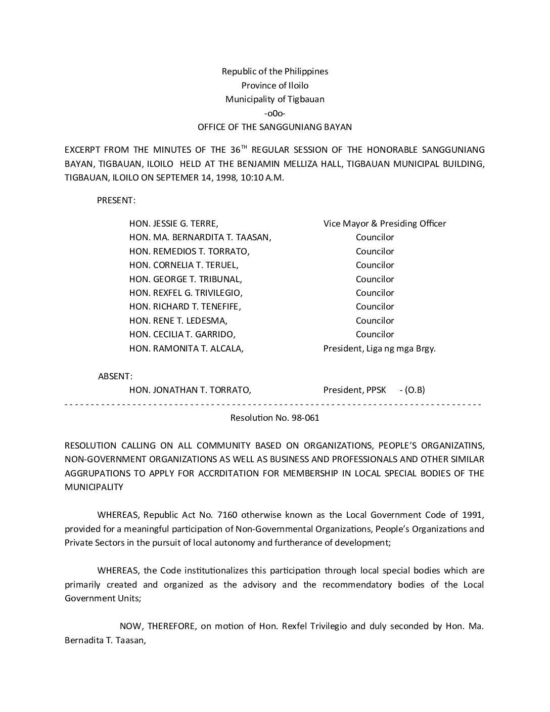 Resolution No. 98-061