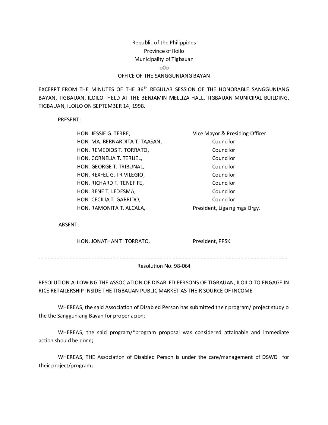 Resolution No. 98-064