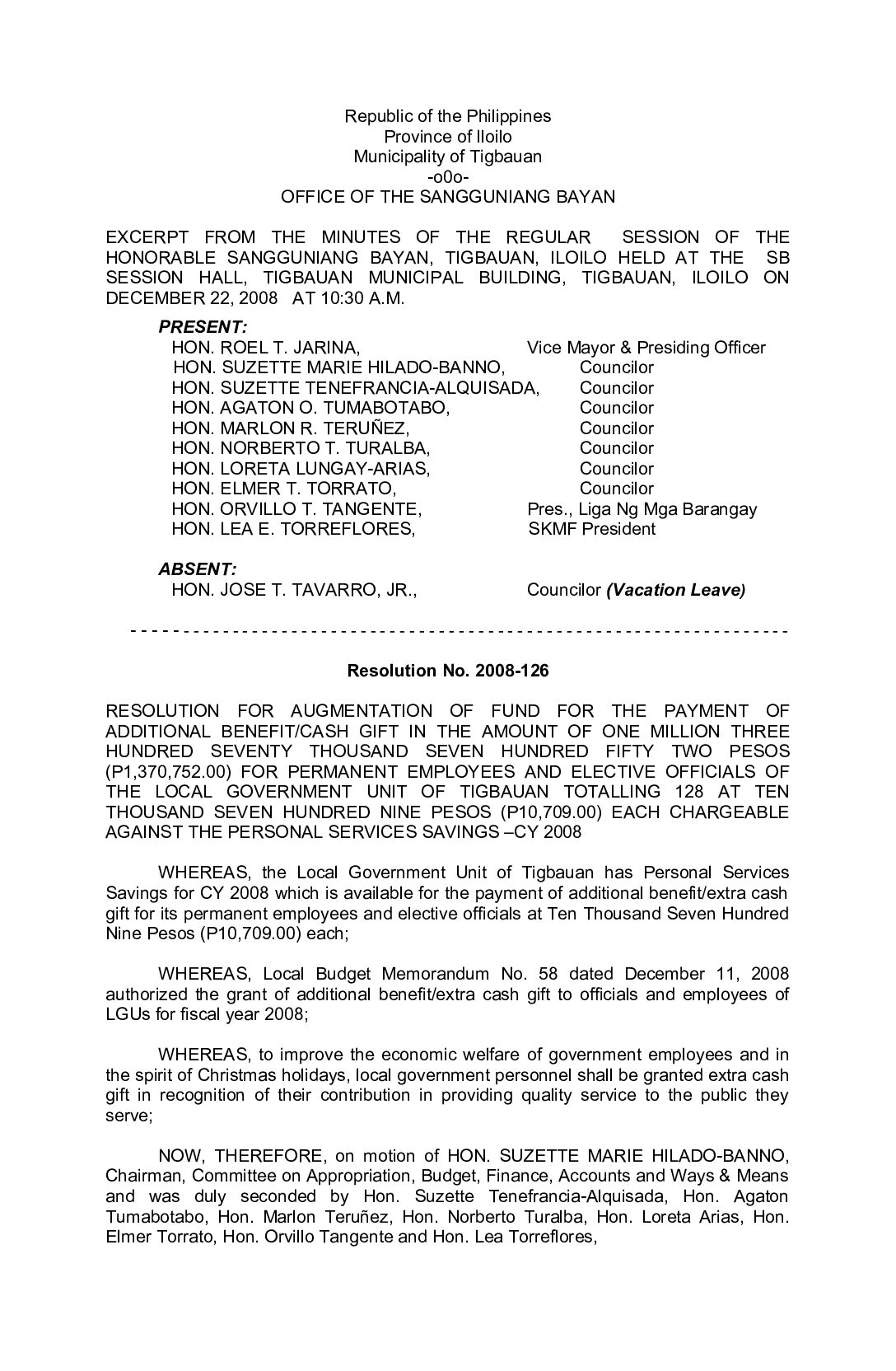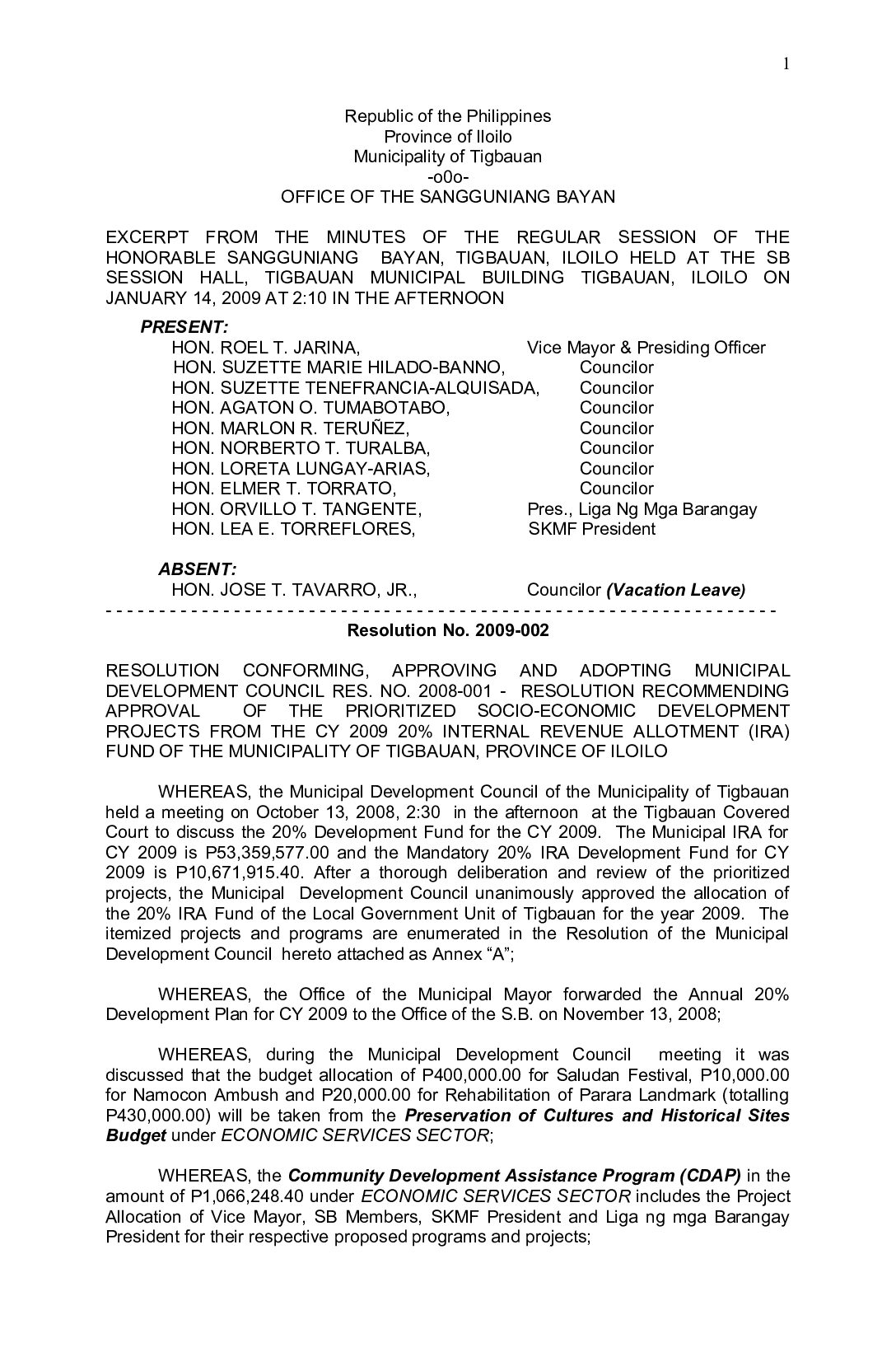 Resolution No. 2009-002