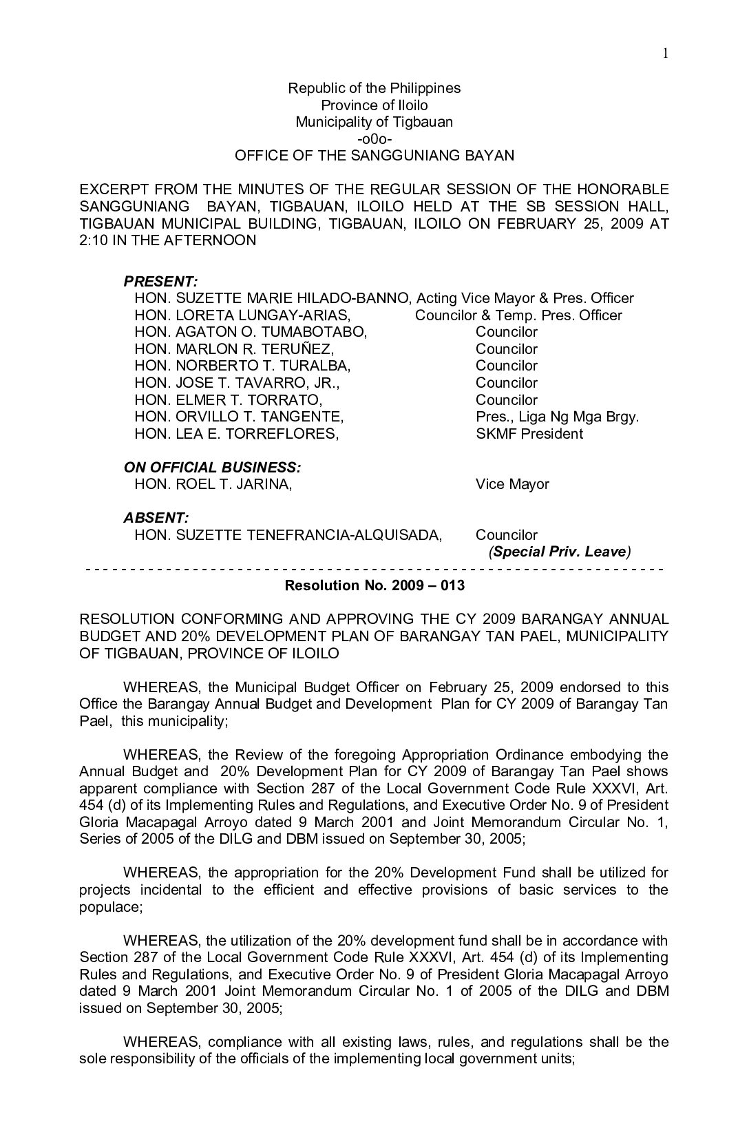 Resolution No. 2009-013