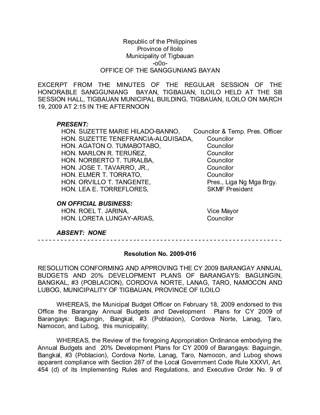 Resolution No. 2009-016