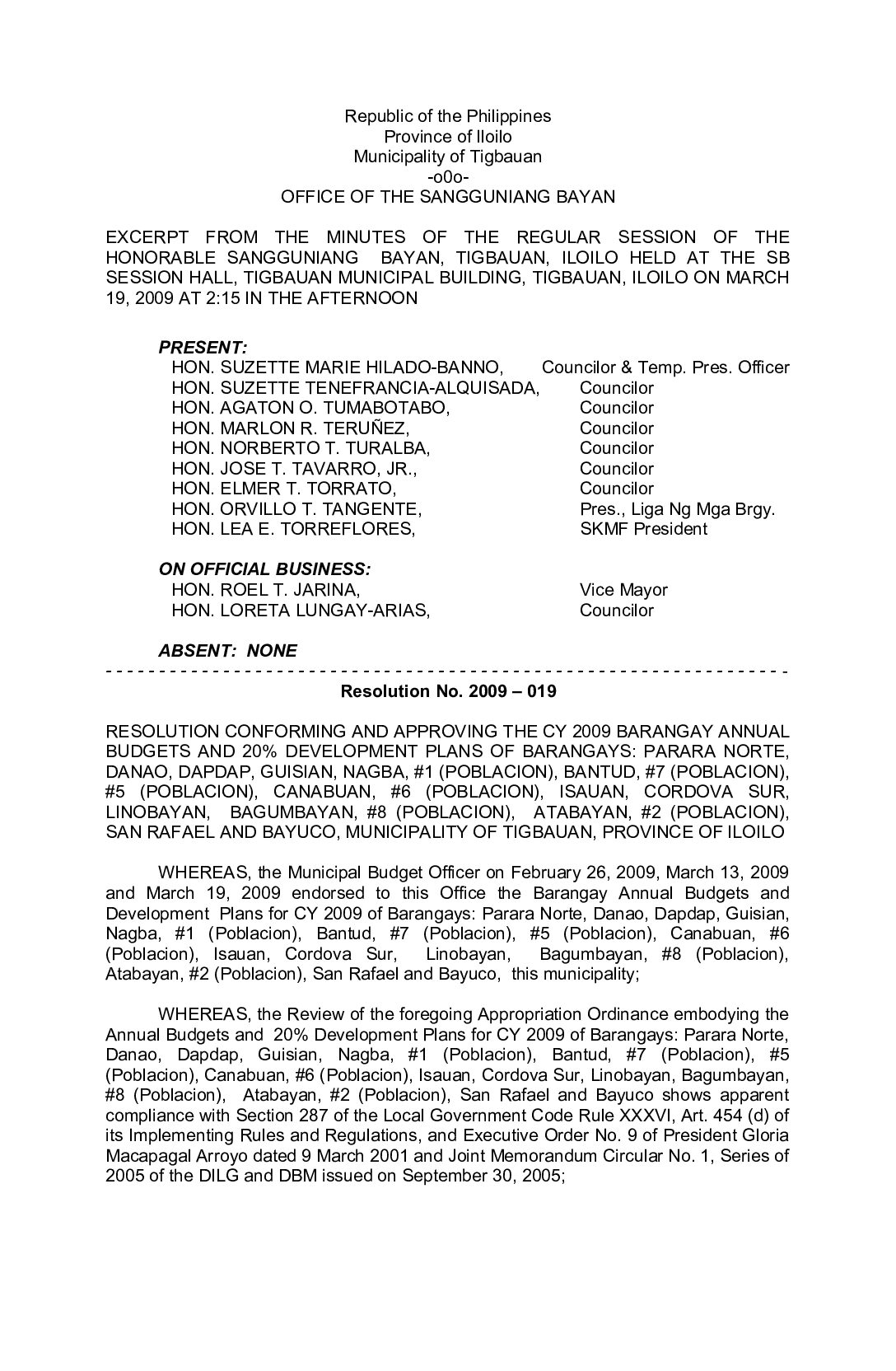Resolution No. 2009-019