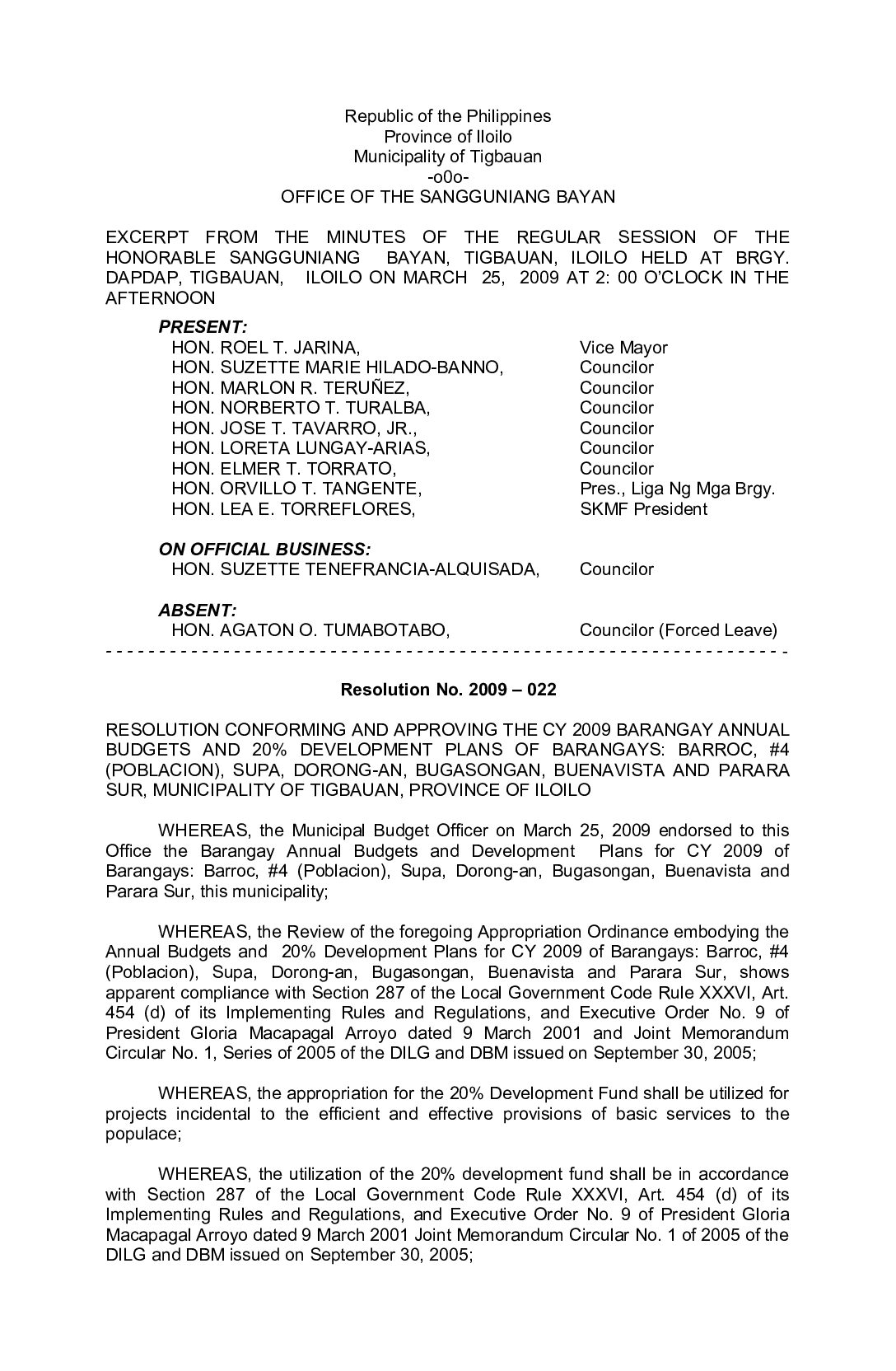 Resolution No. 2009-022