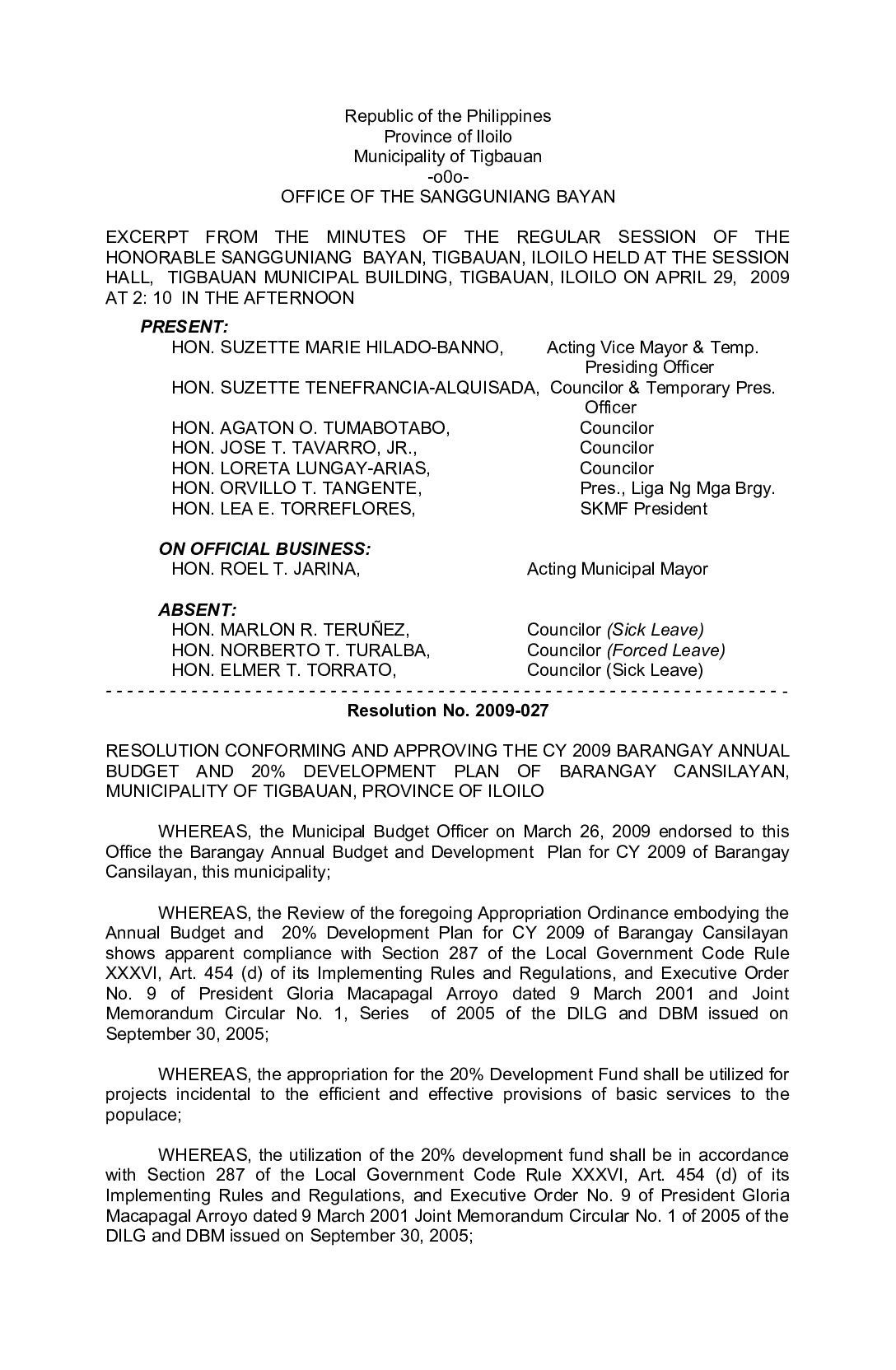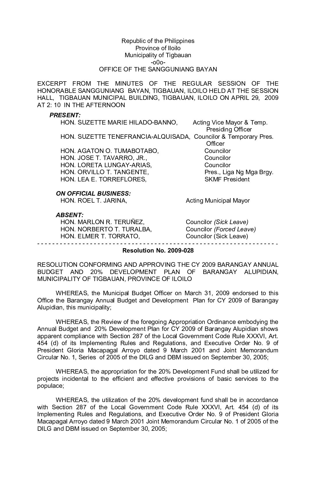 Resolution No. 2009-028
