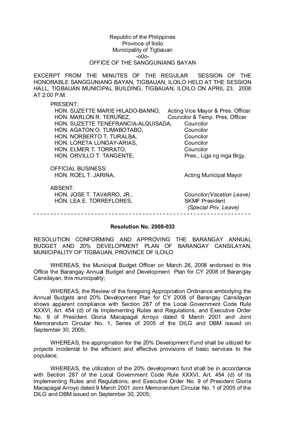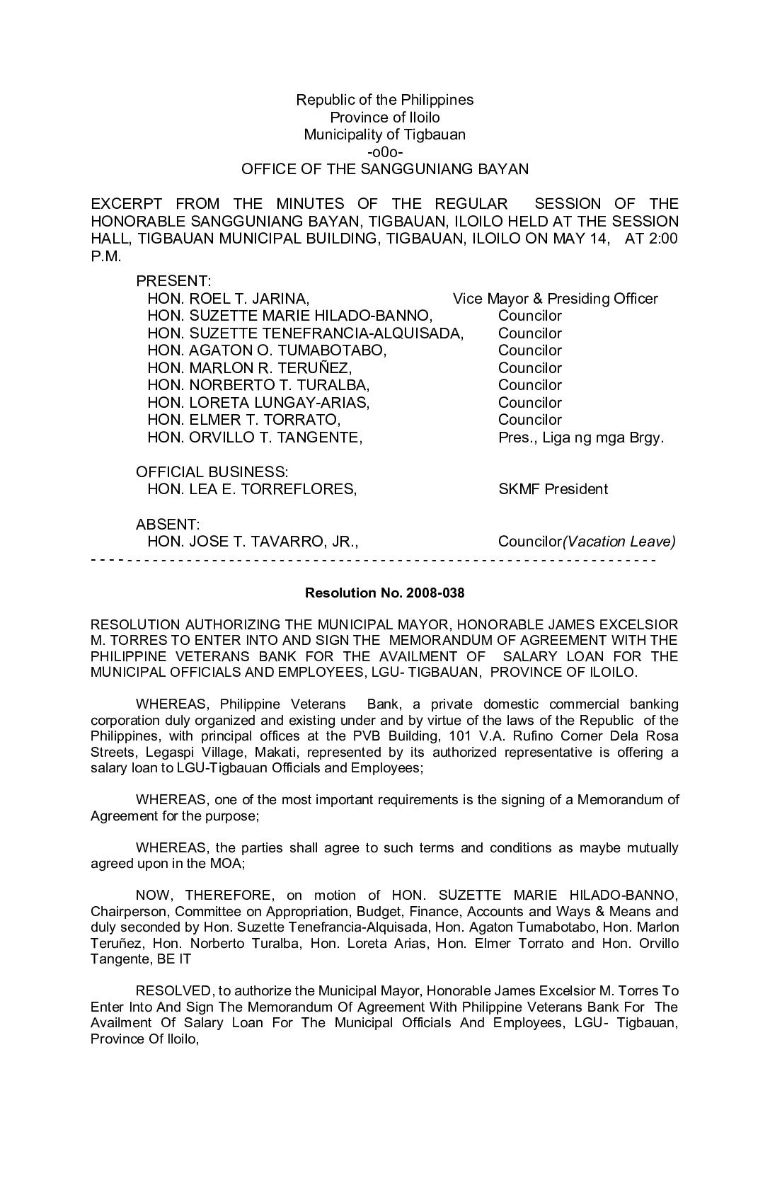 Resolution No. 2008-038