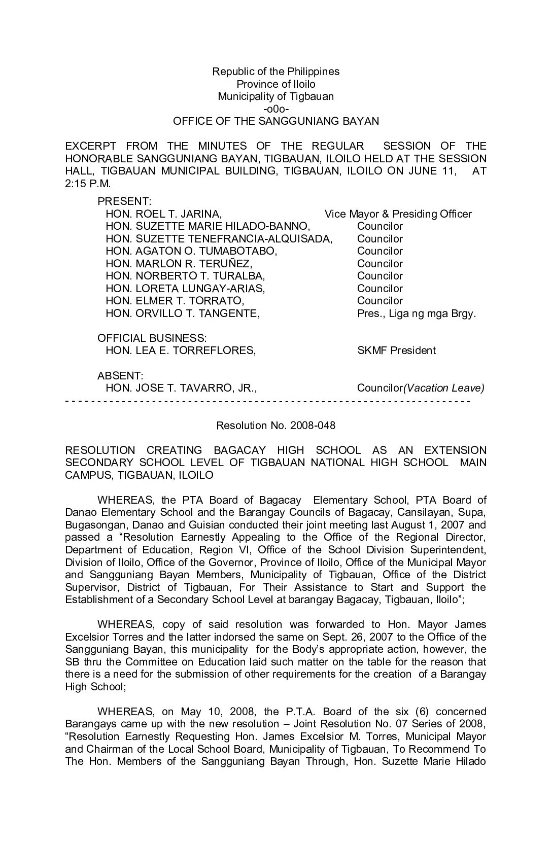 Resolution No. 2008-048