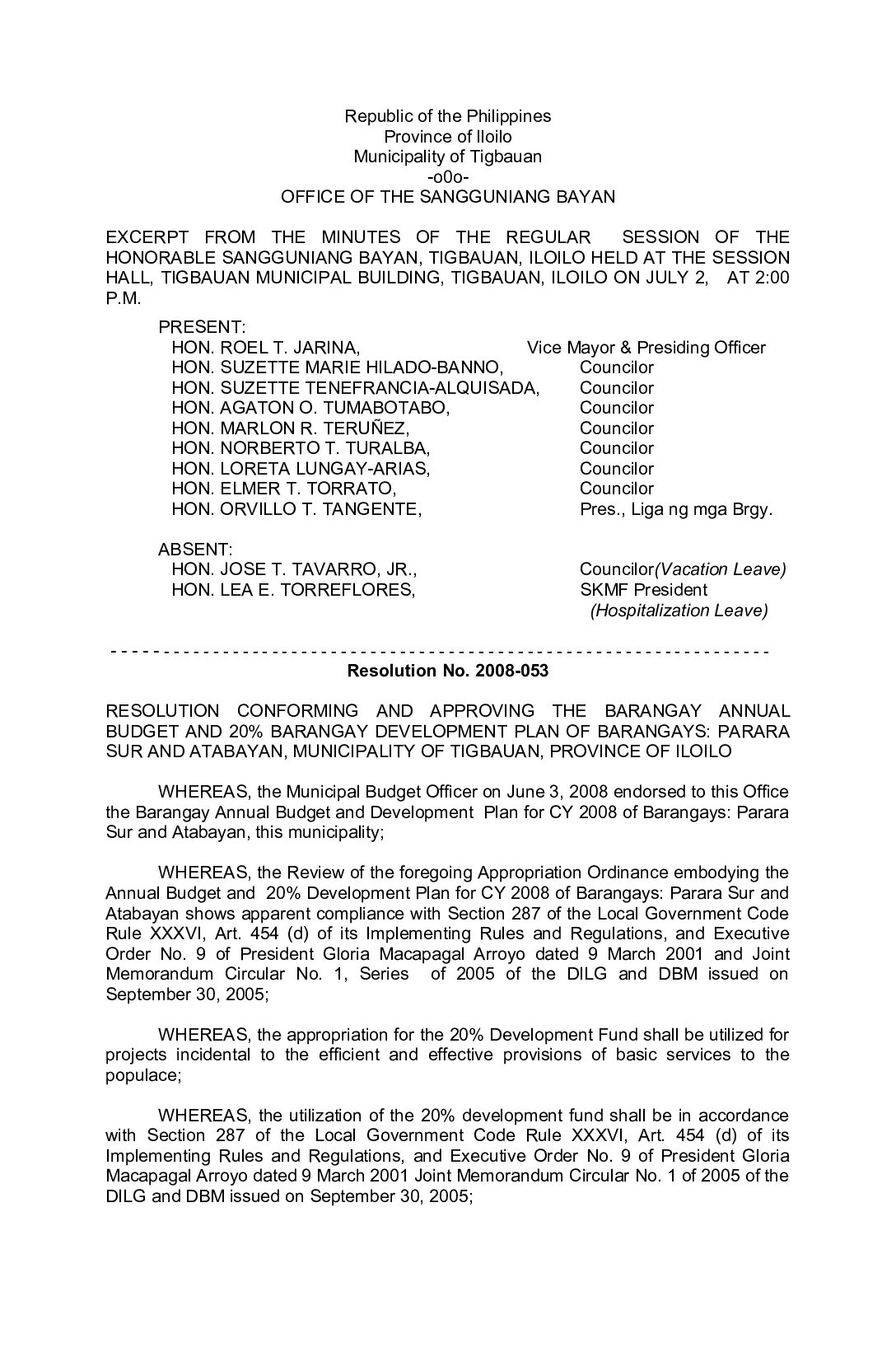 Resolution No. 2008-053