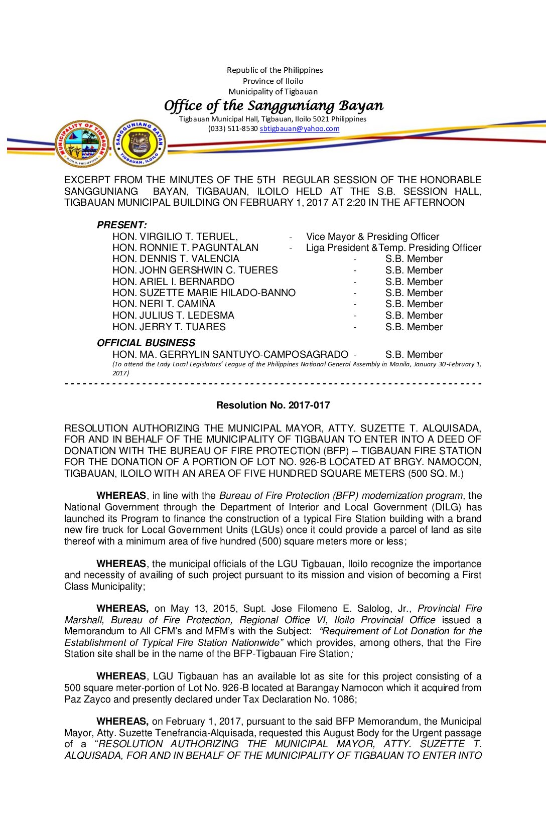 Resolution No. 2017-017