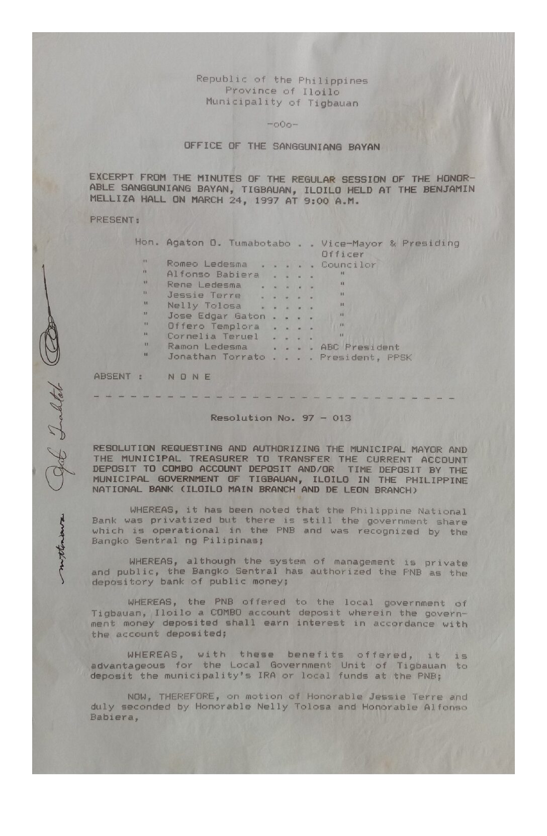 Resolution No. 97-013