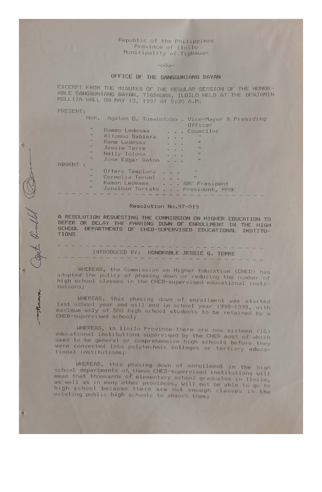 Resolution No. 97-019