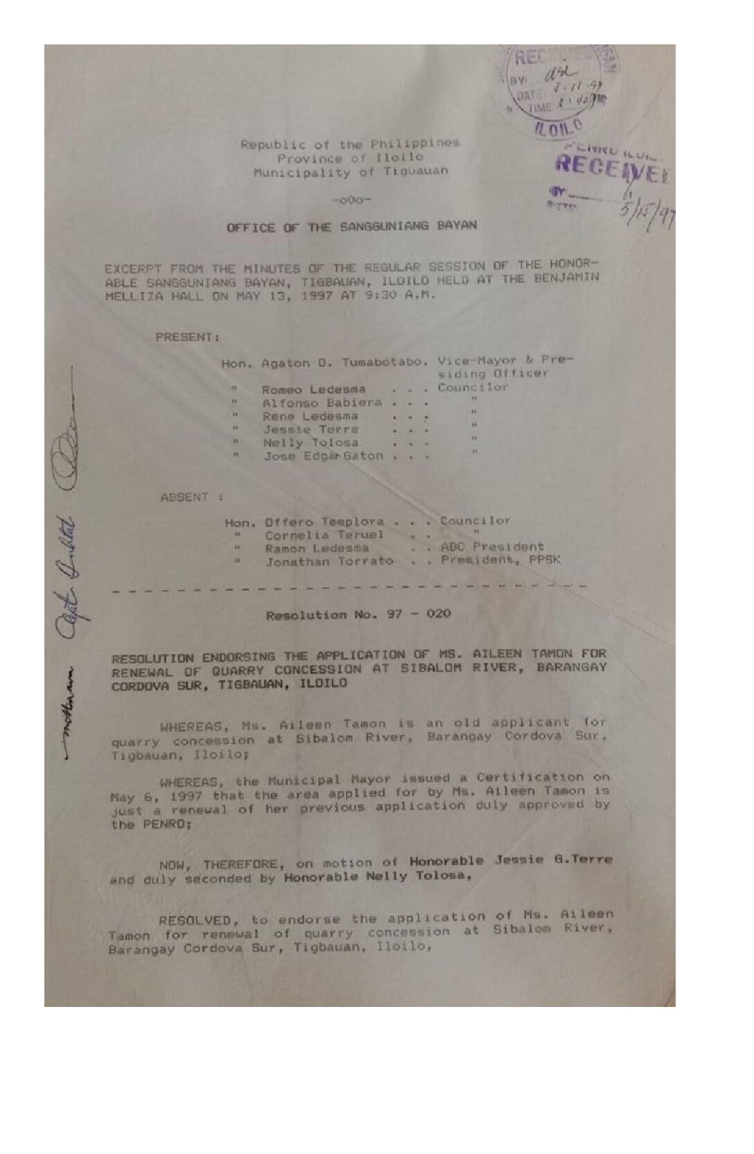 Resolution No. 97-020