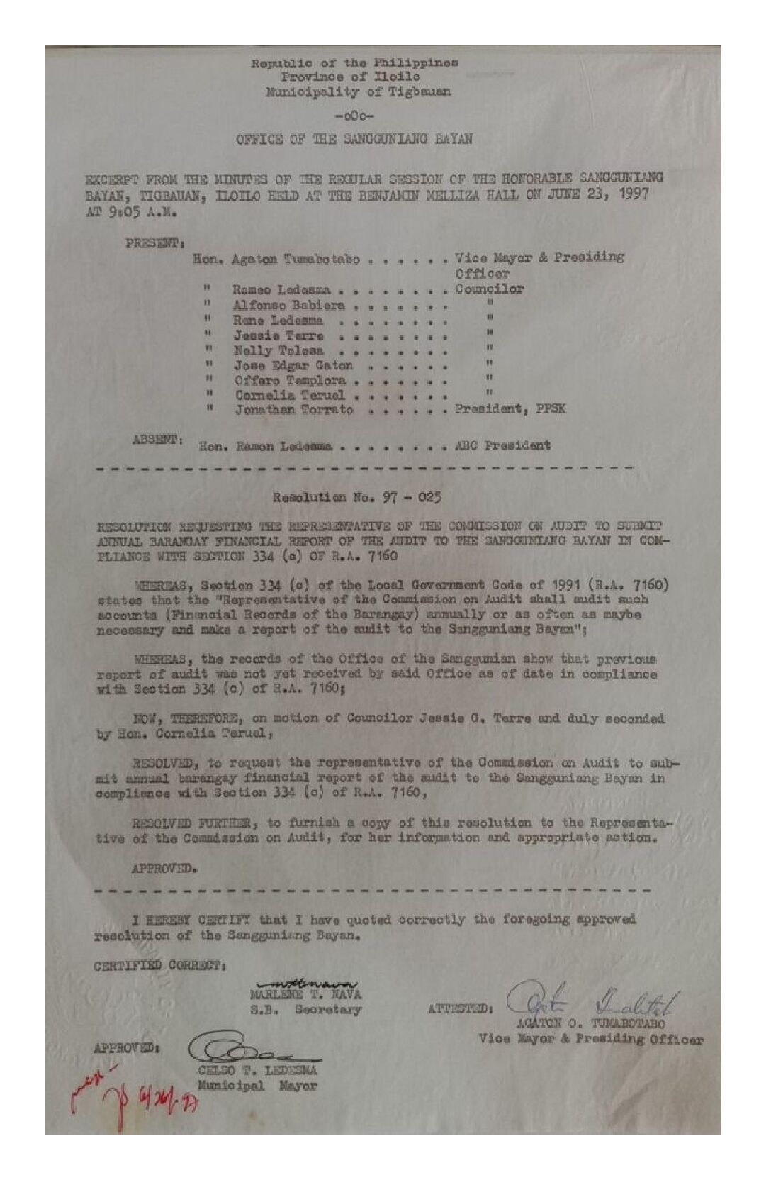Resolution No. 97-025