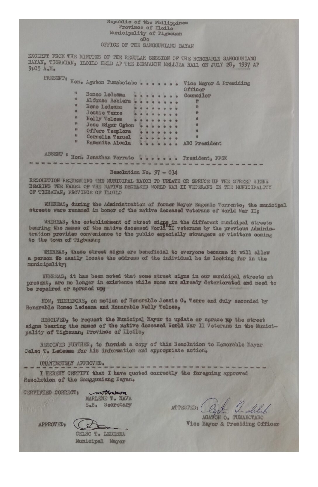 Resolution No. 97-034